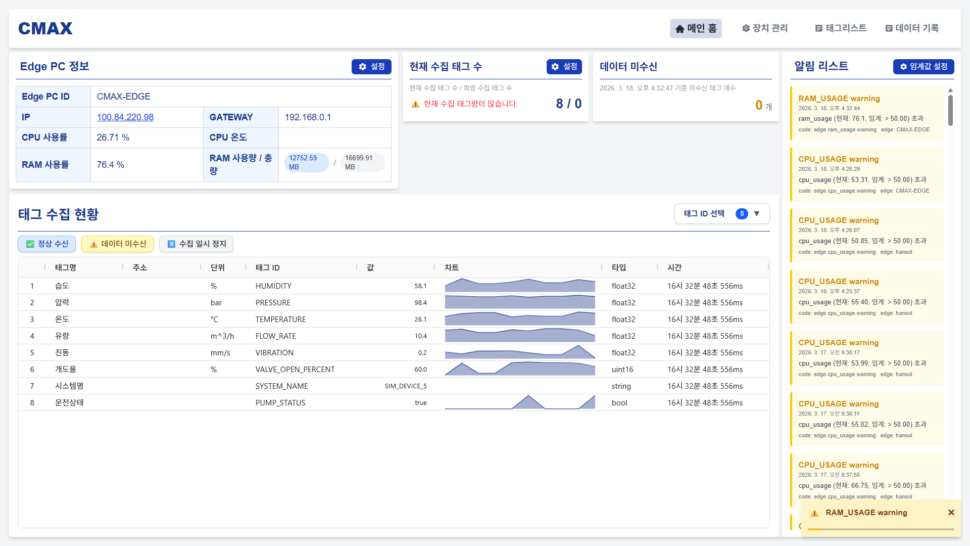 산업 데이터를 기반으로 한 AI 및 스마트팩토리 기술 혁신을 목표로 CMAX가 설립되었습니다. 데이터 수집부터 분석, 모니터링, AI 적용까지 이어지는 산업 데이터 플랫폼을 통해 제조와 로봇 산업의 디지털 전환을 선도하고 있습니다.
